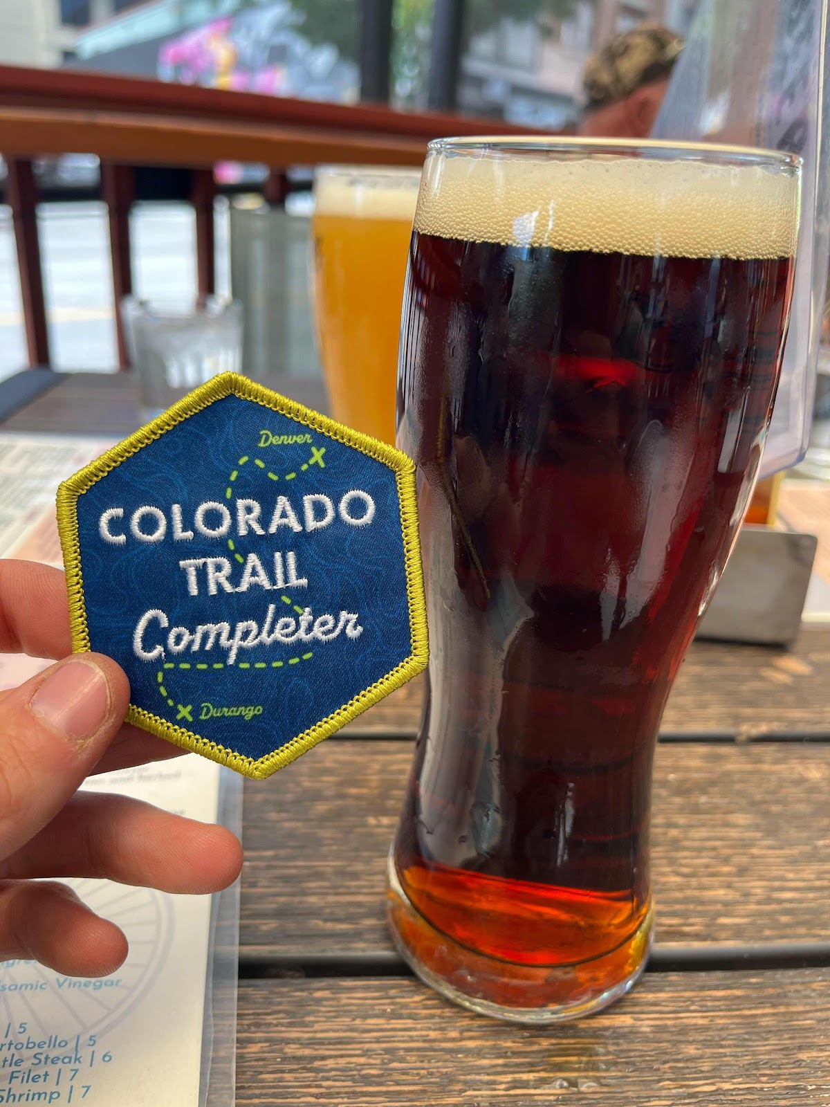 We took our pictures at the end and then zoomed into Durango where I got my Colorado Trail patch and my free Nut Brown Ale from Carvers! We ended up feasting there too!