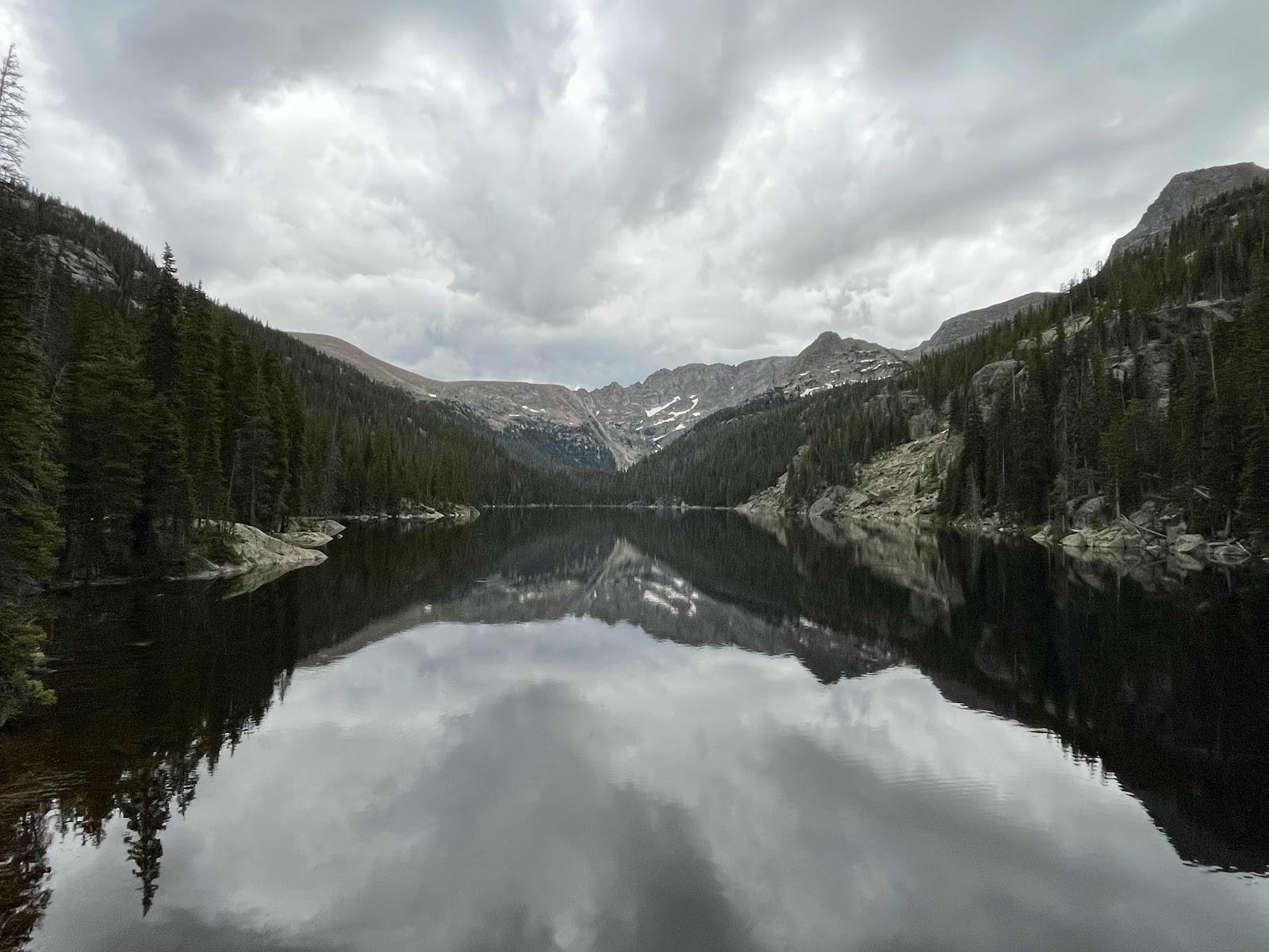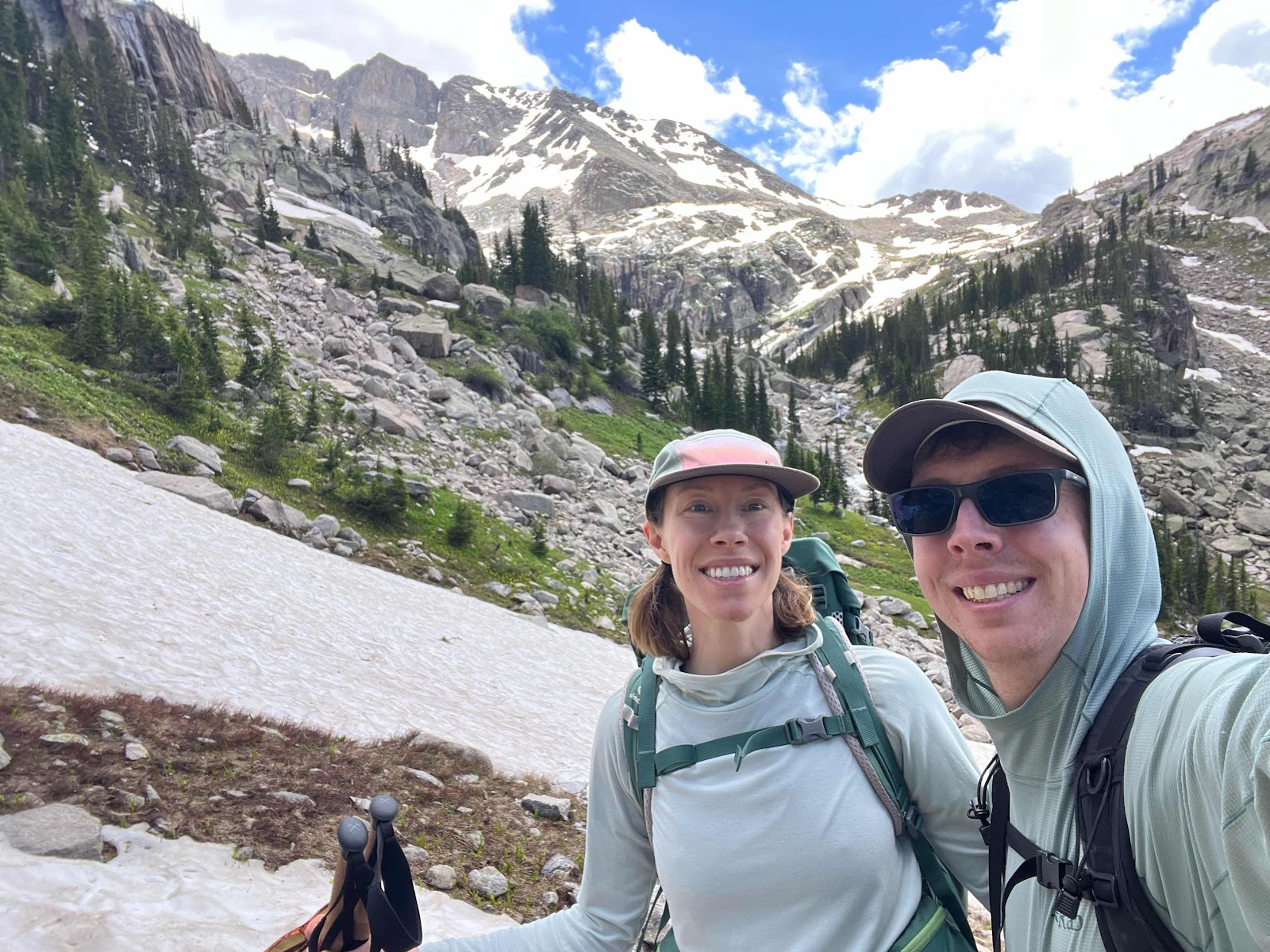 As we climbed higher and higher, we heard some thunder start to rumble close by and a really dark cloud start to move in. We talked about a plan briefly and decided it was best we head back into tree line and back towards camp. We stopped to take a picture at the high point we reached.