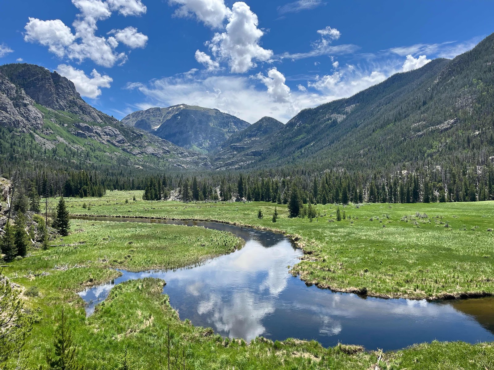 Our plan was to leave the house at 6 and get the by 9am to start hiking. Unfortunately there was a rock slide on highway 40 so we had to pick an alternate driving route. This was actually a blessing because even though it took 2 hrs longer, we were able to enter the park from the Estes Park side and drive up and over the Continental Divide to get down to our trailhead. What a beautiful detour!
