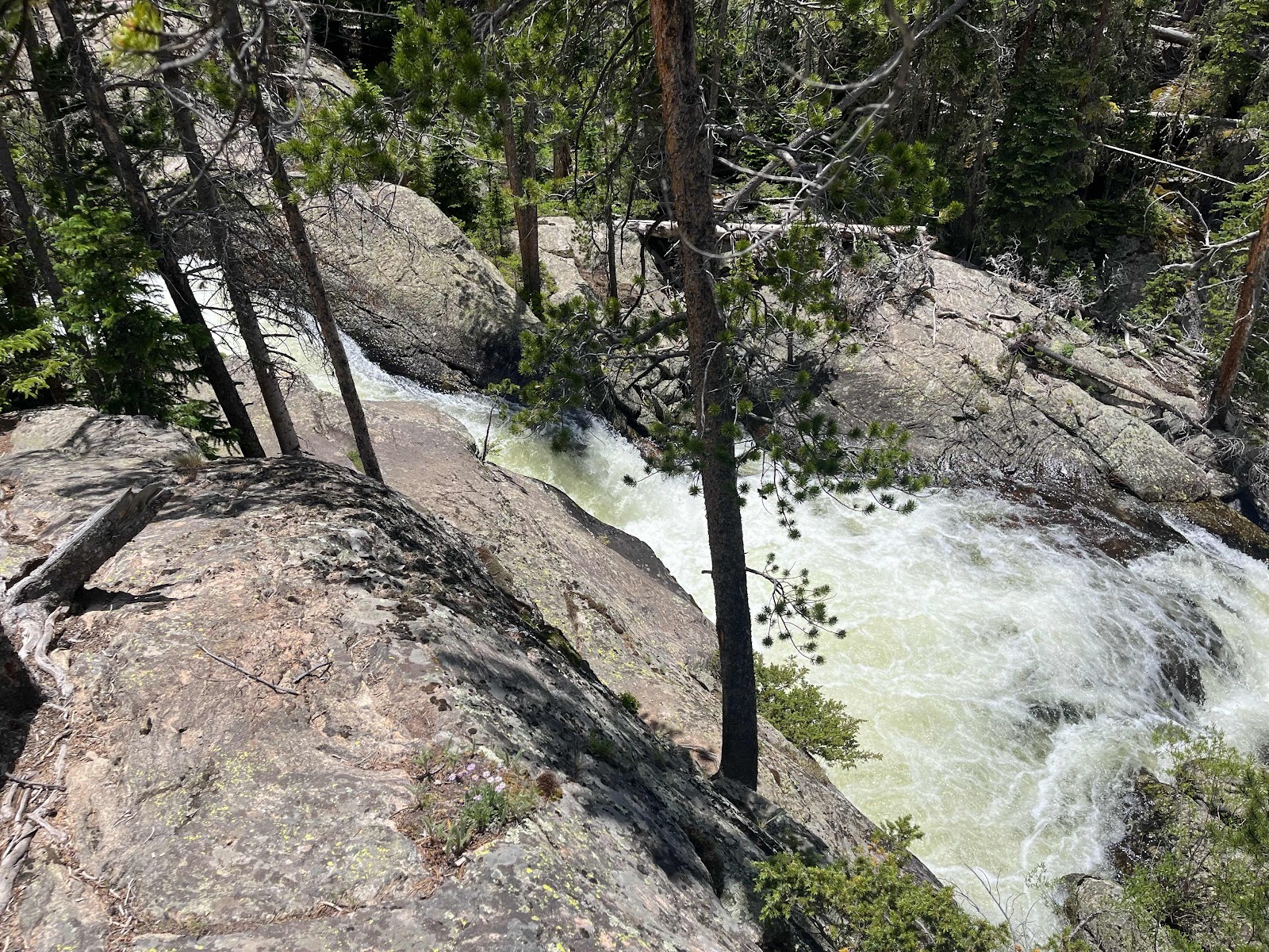 After passing Lone Pine Lake, we were excited to get up to our campsite for the next two nights at Lake Verna. It’s the farthest campsite into the East Inlet Trail. There were more awesome water features and cool trail sections along the way.