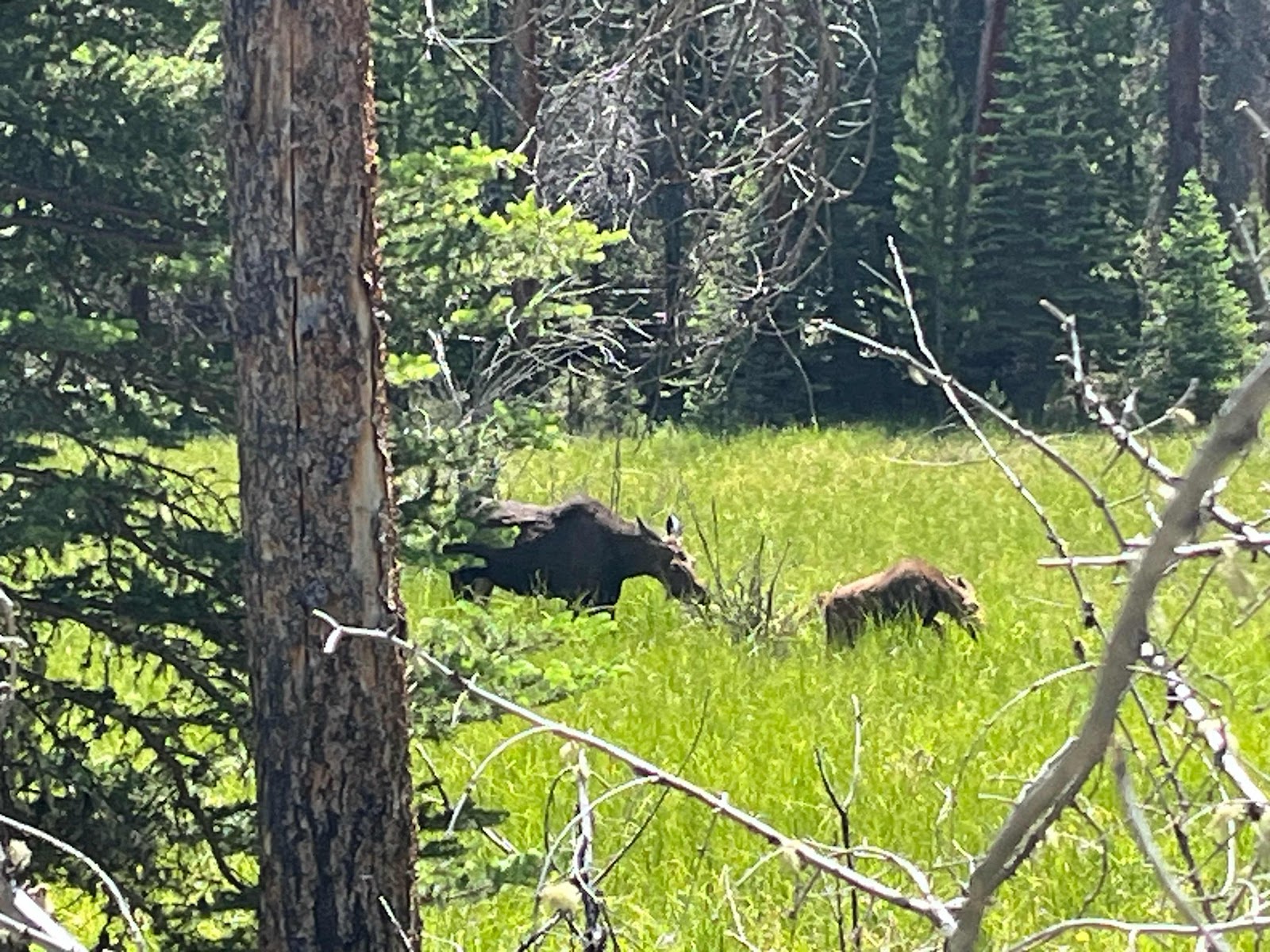We saw a Mama moose and calf in the first meadow!