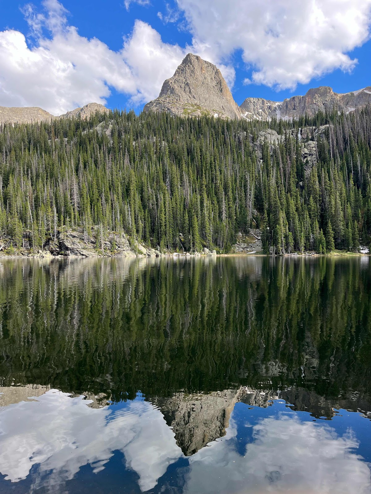 Claire and I decided to get out to Rocky Mountain National Park for her birthday weekend. I was able to score 2 nights for Lake Verna at the end of the East Inlet Trail. It’s a gorgeous area of the park that extends inward (east) from Grand Lake into the heart of the Rockies. It is about a 7 mile hike one way with some serious elevation gain, with the lake at 10,255 ish feet.