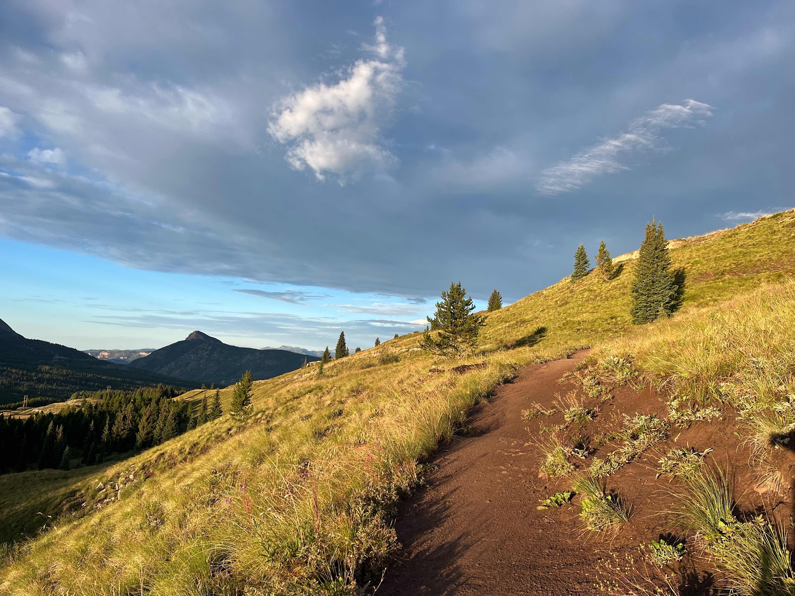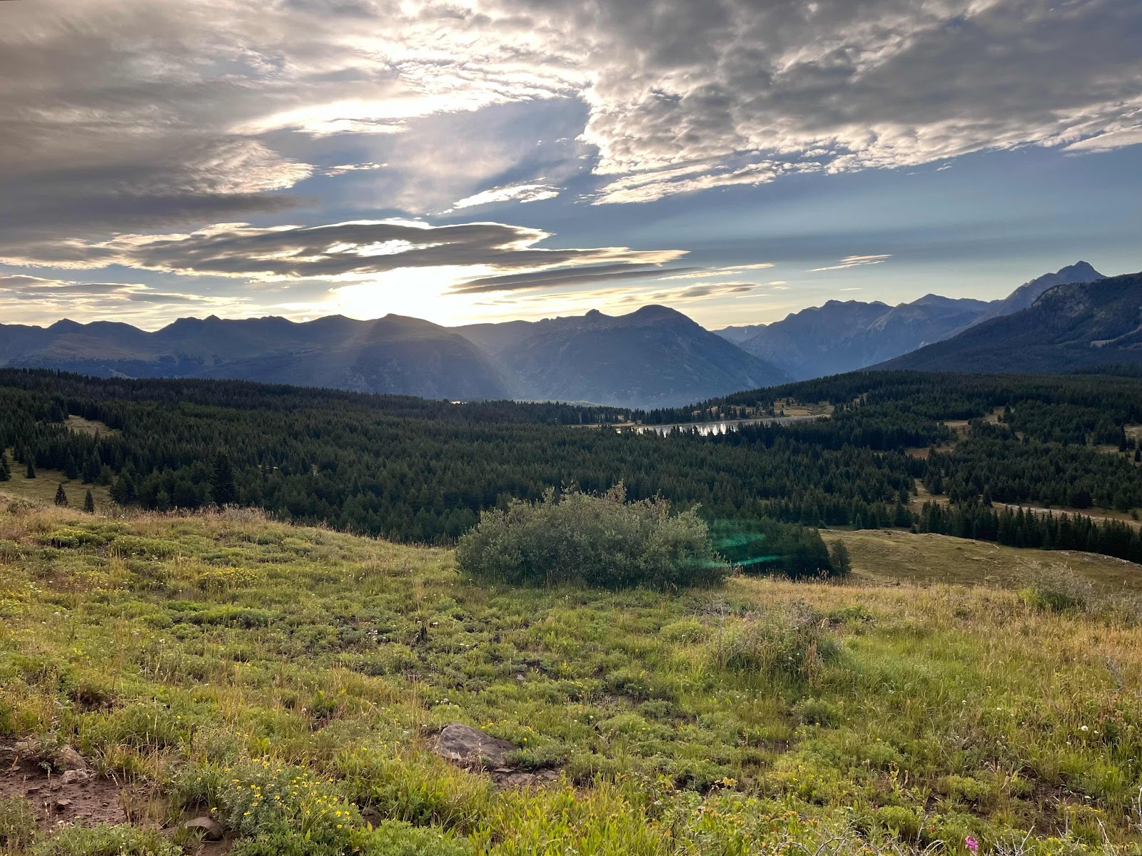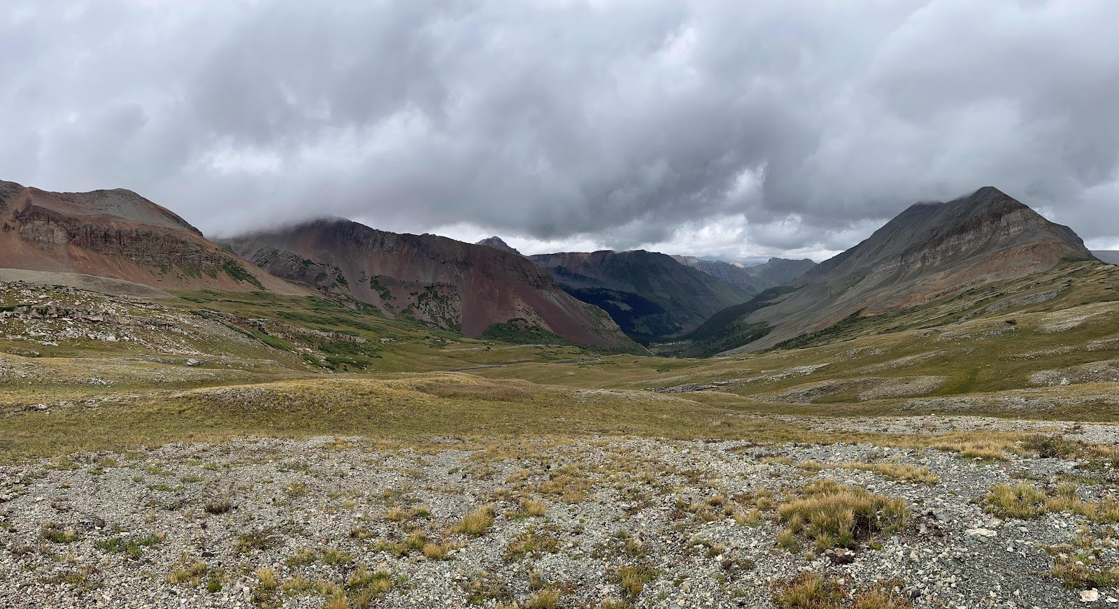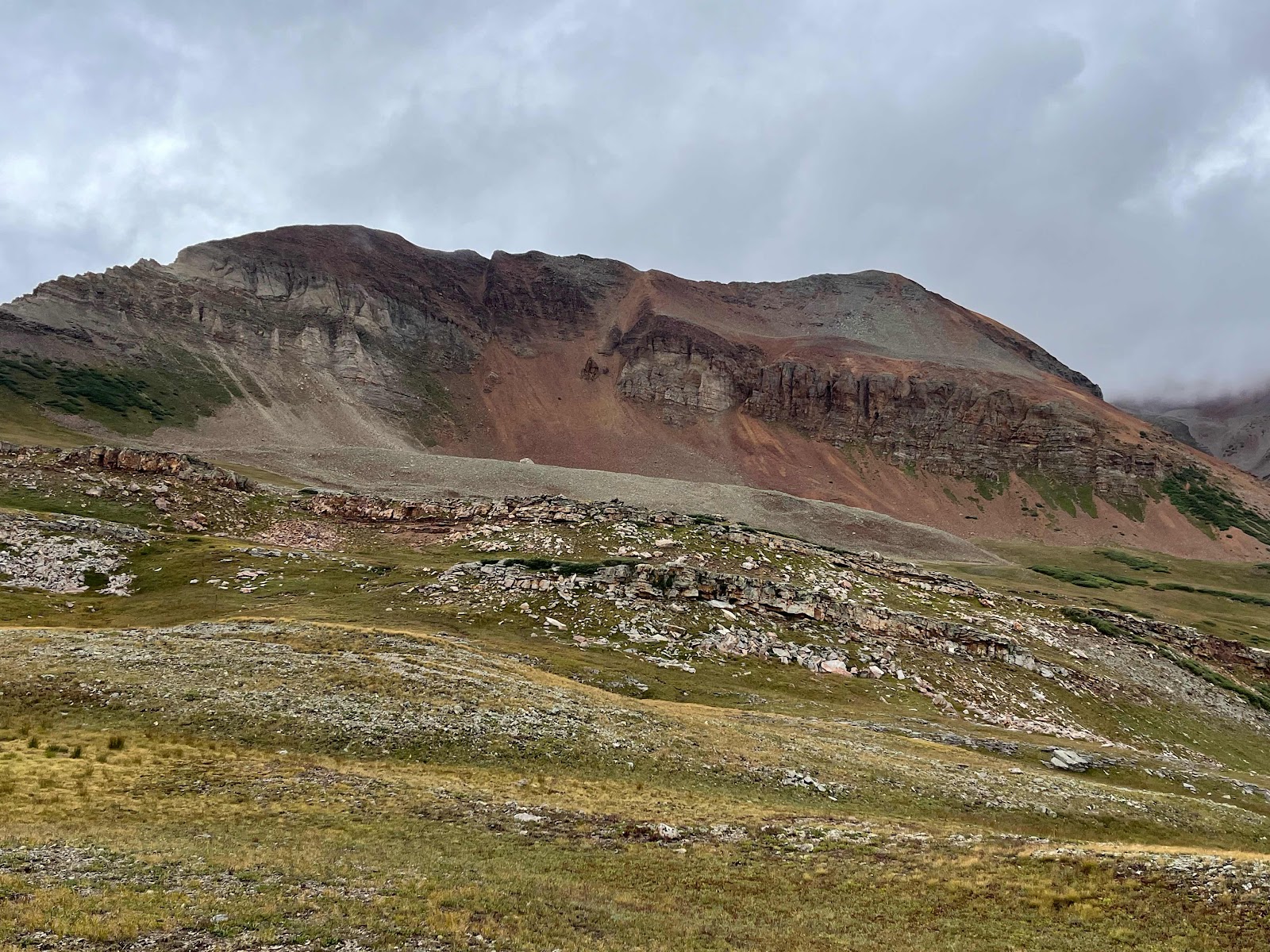 My hands got soaked and were freezing cold even with my rain mitts, and I almost lost full dexterity again in my pinky and ring fingers. I am stoked to be done with this trail soon! I caught Cheeseburgler on the uphilll towards the next pass. Luckily, the weather started clearing up nearing the top and we even had some sunshine on the other side!