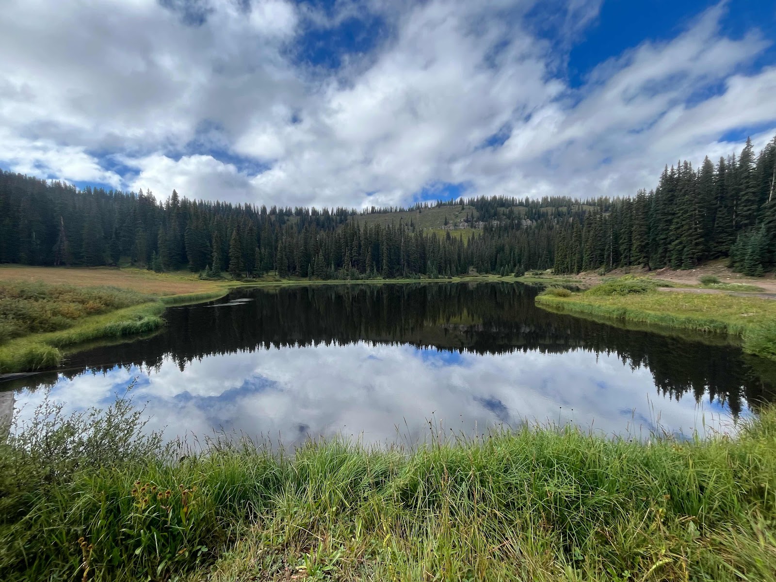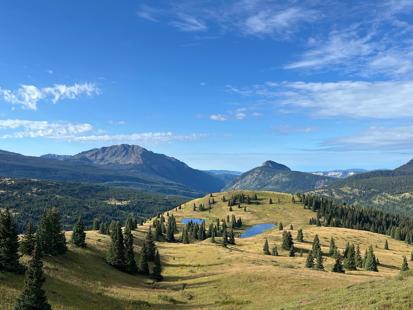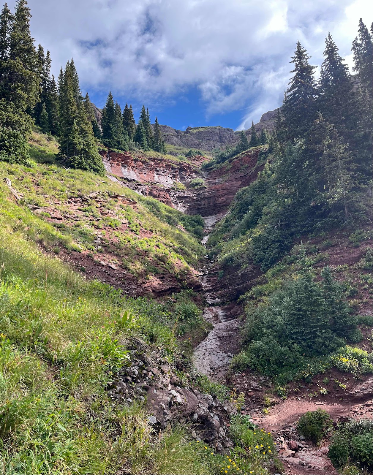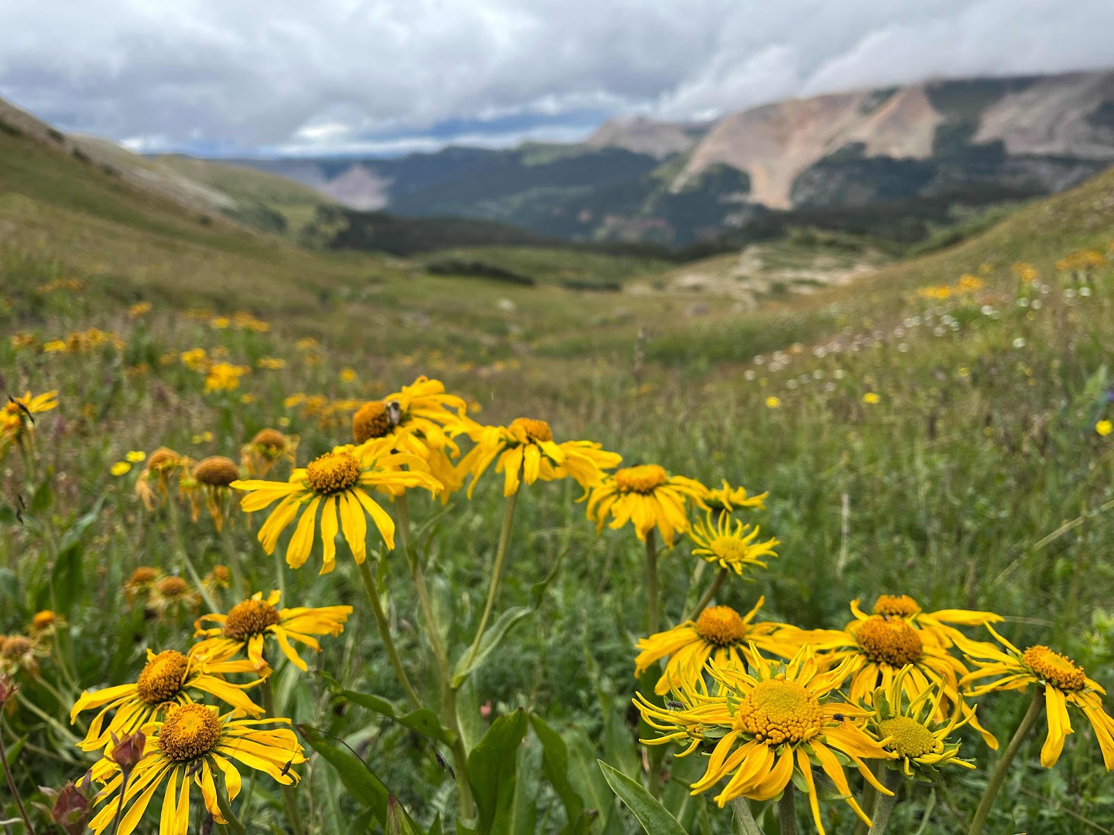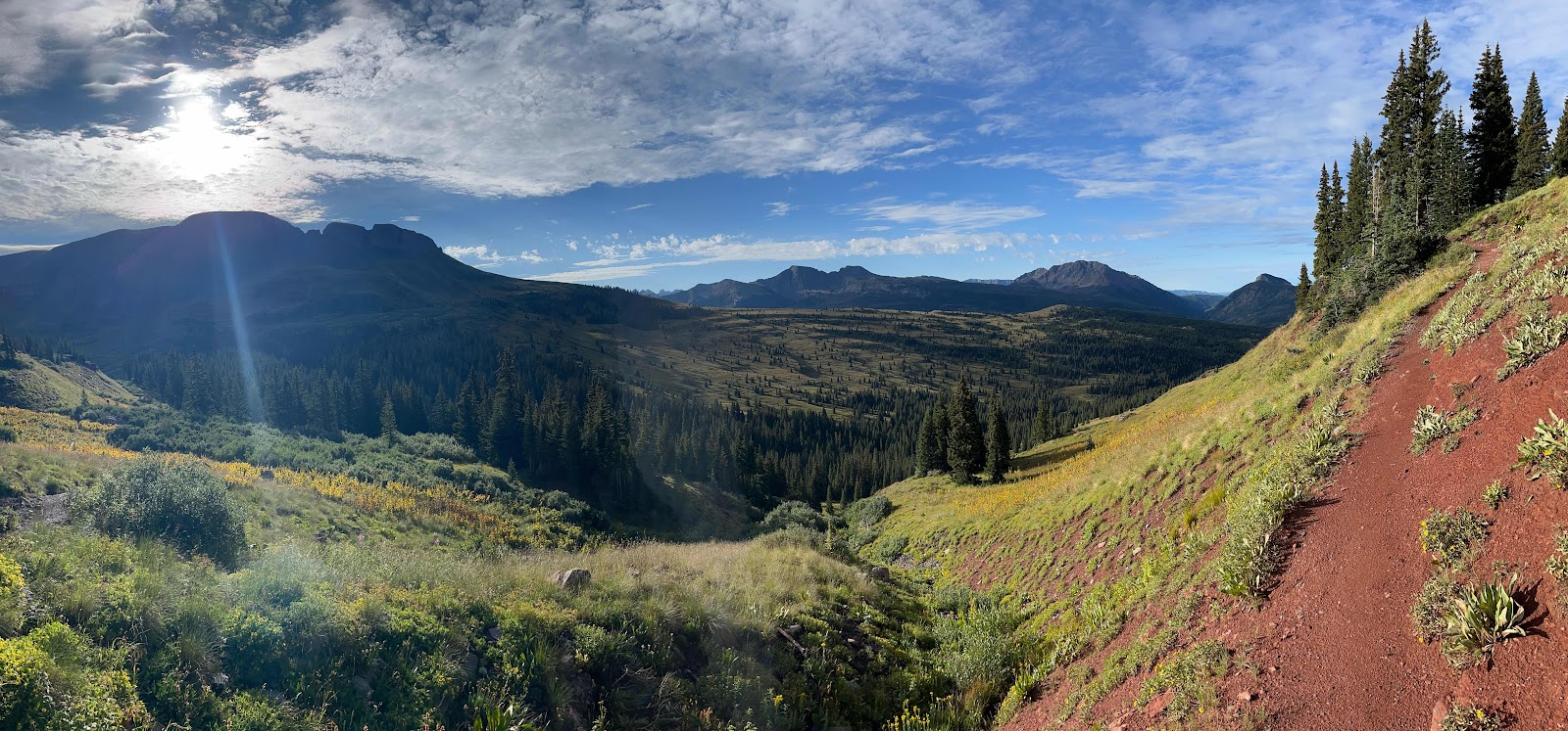 My hands got soaked and were freezing cold even with my rain mitts, and I almost lost full dexterity again in my pinky and ring fingers. I am stoked to be done with this trail soon! I caught Cheeseburgler on the uphilll towards the next pass. Luckily, the weather started clearing up nearing the top and we even had some sunshine on the other side!