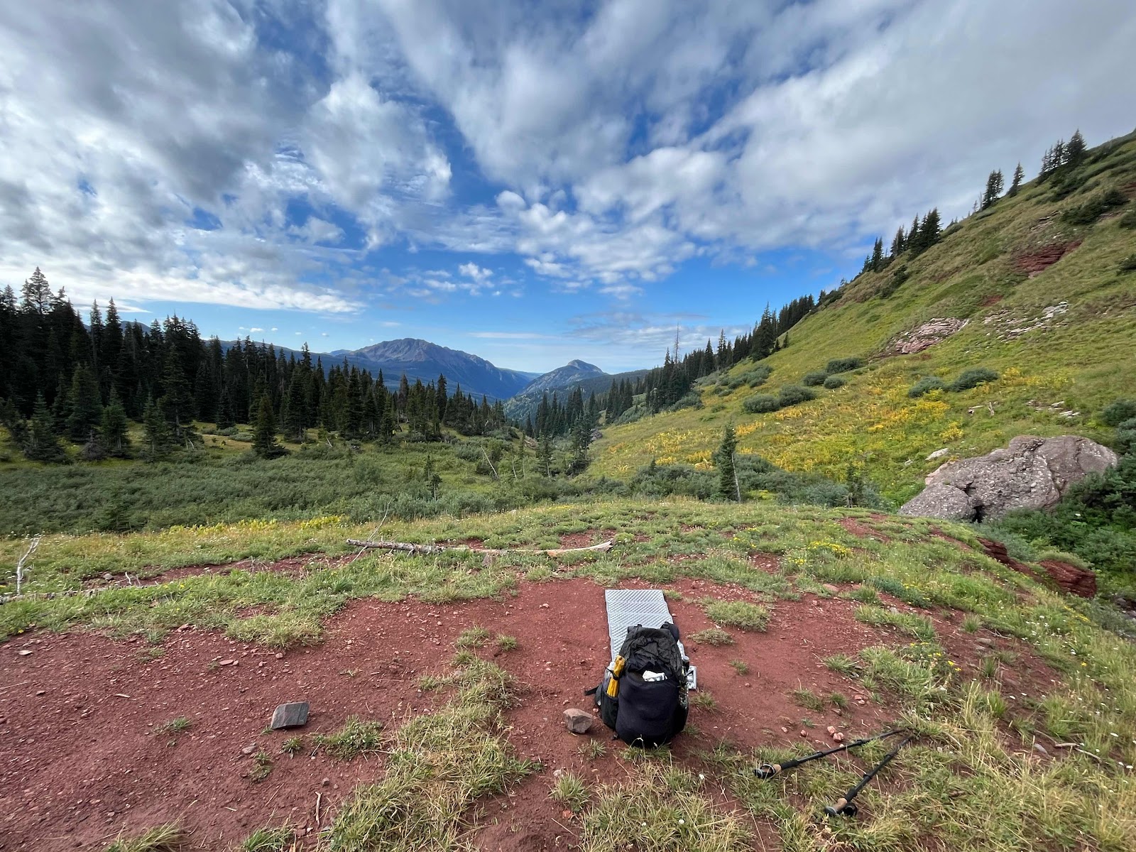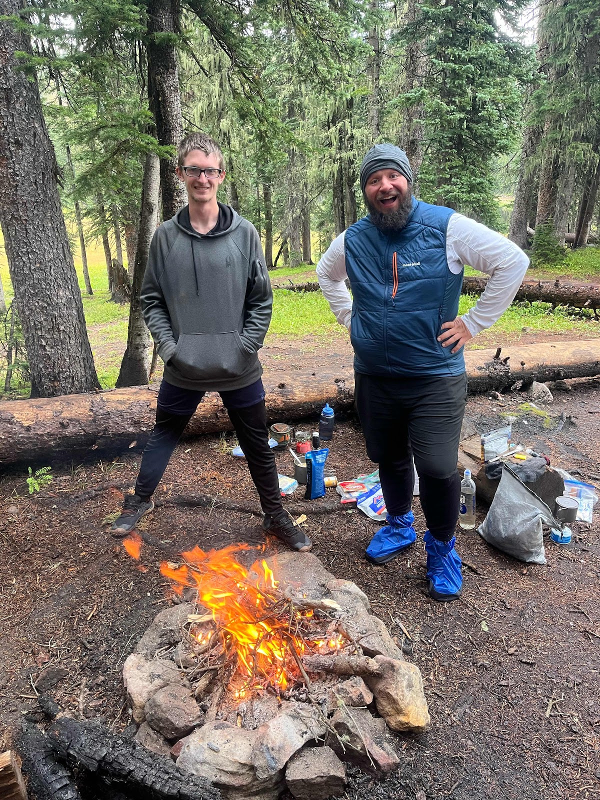 I didn’t think I’d be enjoying a fire on this trail at all but honestly today was the perfect day to have one. I’m not a fan of fires in Colorado or the West in the summer, but I made sure that we stirred the fire and put it completely out before we all went to bed. It’s been a long, wet, and soggy day, my poor feetsies are still freezing! Pretty sure we’re going to try for a 22 miler tomorrow, due to a long water carry. I hope the weather is better!