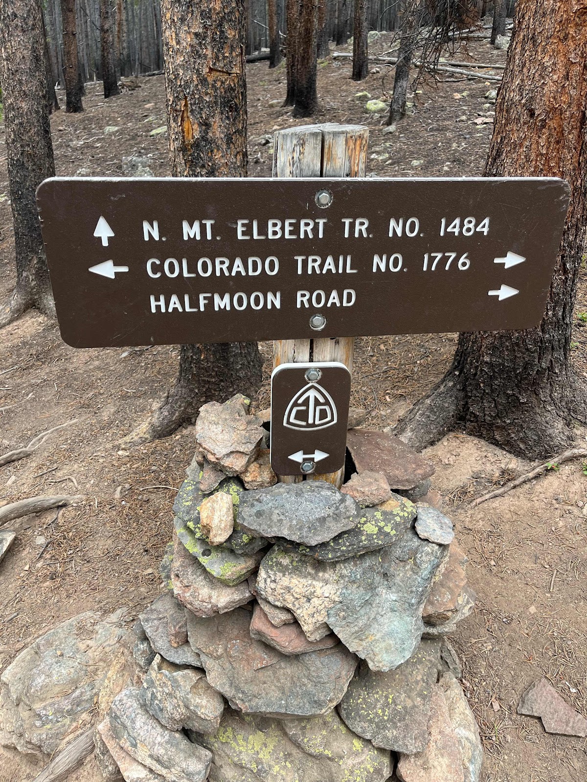At the Mt Elbert junction, I had already gone 19 miles. Even with my bum knee, I decided to hobble up 1.5 miles to the one “flat” spot on the whole mountain. I was thinking about continuing 5 more mile on the CT to the South Elbert trailhead, then in the morning, leave my tent and sleeping stuff set up and just take my empty backpack with my food to the summit.